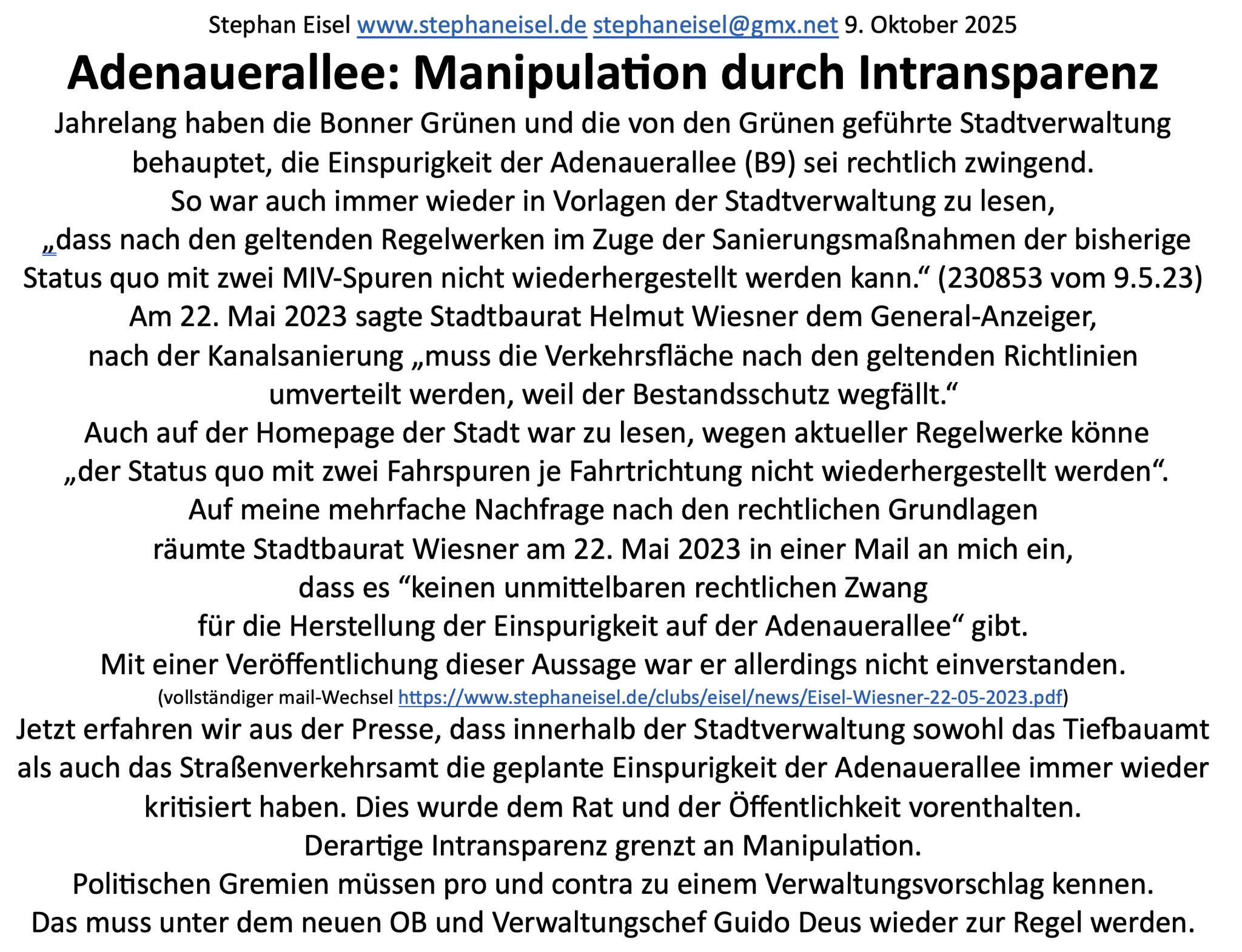 im Bonner Stadtrat nicht zum Zünglein an der Waage wird, müssen sich die demokratischen Parteien einigen: Demokraten fassen und (!) blockieren keine Beschlüsse, wenn das nur mit AfD-Stimmen geht. In diesem Fall hilft unter den Demokraten die Minderheit der Mehrheit. Die von CDU, SPD und FDP angestrebte Kooperation schafft dafür die Voraussetzung.