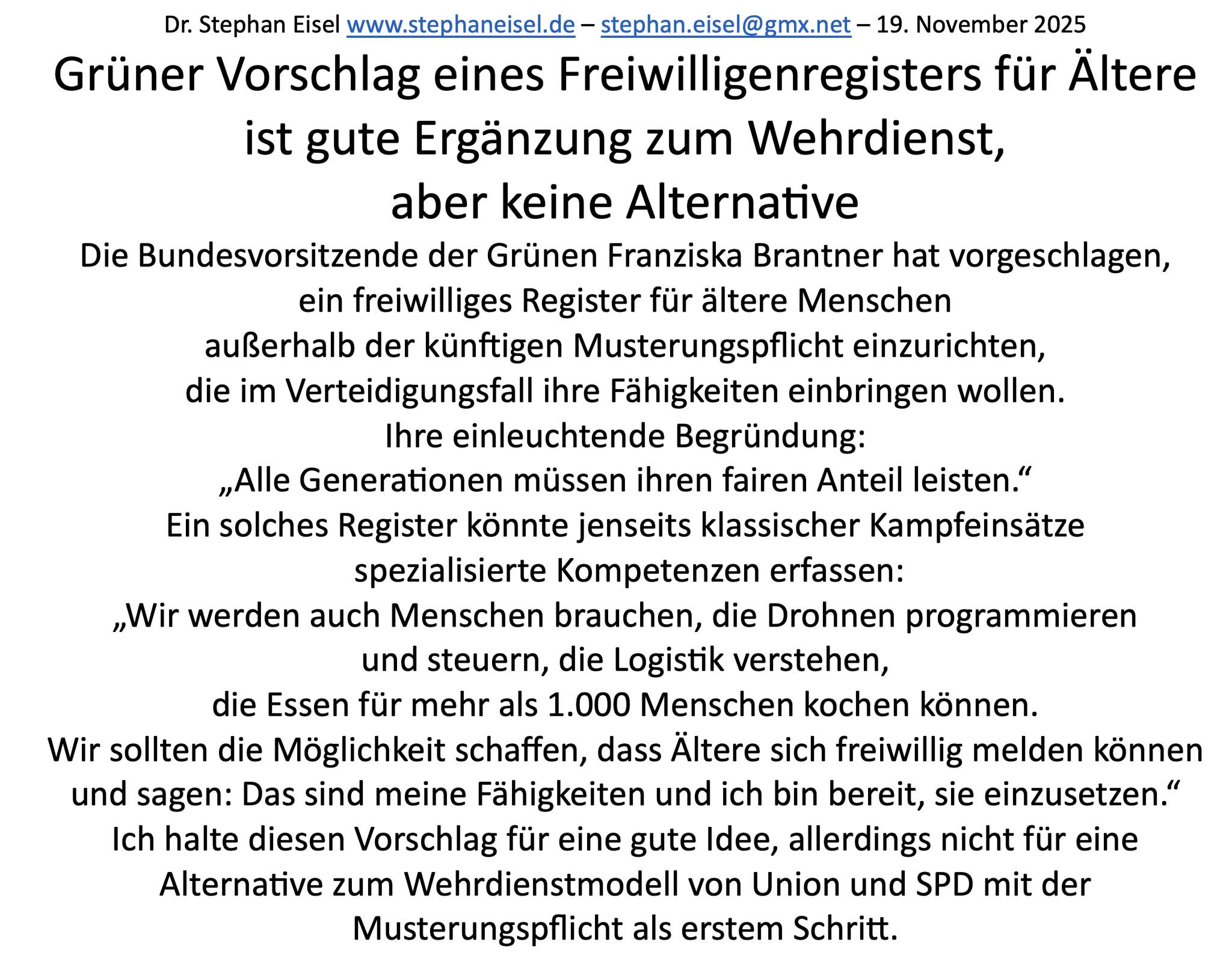 Themen sollen zum Innehalten einladen, wo ein medialer Hype oft zu Kurzschlüssen verführt. Demokratie braucht ebenso Zeit zum Austausch der Argumente wie Klarheit der Positionen. Hier finden Sie einige Kommentare im 2. Halbjahr 2025.
