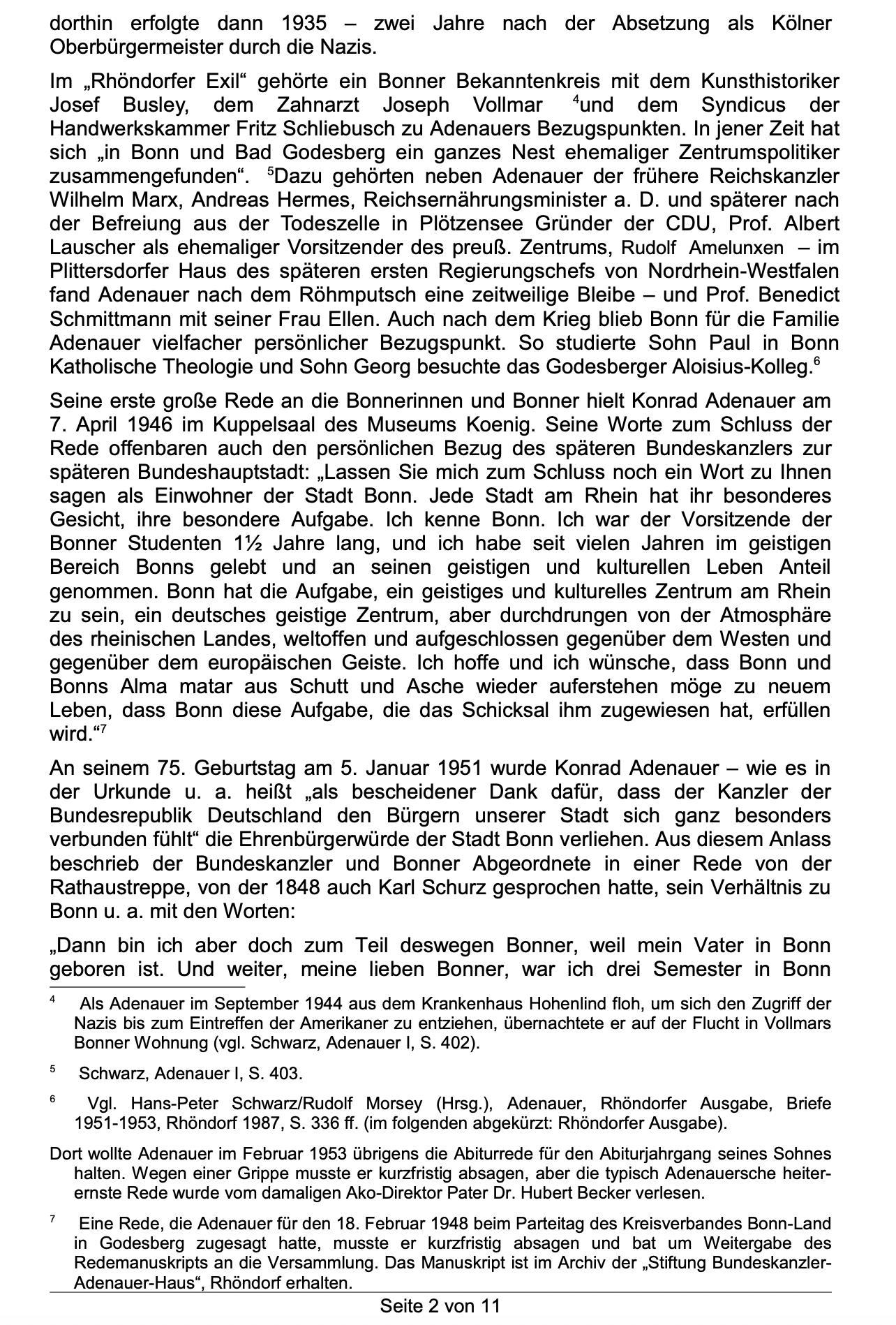 am 5. Januar 2026 geworden. Die herausragenden politischen Verdienste des ersten Bundeskanzlers wurden und werden vielfach gewürdigt. Dabei fällt oft unter den Tisch, dass Konrad Adenauer von 1949 bis zu seinem Tod 1967 direkt gewählter Bonner Bundestagsabgeodneter war. Diesem Thema widmet sich ein Aufsatz von Stephan Eisel.