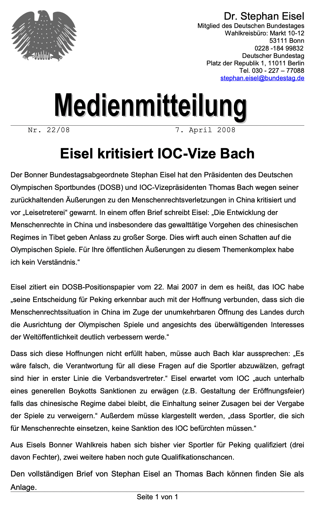 im Februar in Peking stattfanden, standen vor dem gleichen Dilemma wie die Sommerspiele in China 2008: Das IOC mit seinem Präsidenten Thomas Bach - 2008 war er Vizepräsident - hofierte die kommunistische Diktatur. Das war schon vor 14 Jahren Anlass für massive Kritik.